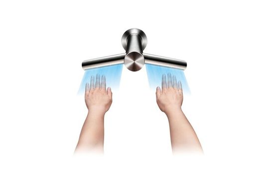 Die Briten scheinen für Nerd-Haushaltsgerät eine Händchen zu haben. Paradebeispiel dafür ist James Dyson, der Erfinder des beutellosen Staubsaugers. Sein jüngster Geniestreich: Ein Wasserhahn, unter dem man seine Hände nicht nur waschen, sondern anschließend auch trocknen kann. Beim Dyson Airblade Tap ragen zwei Röhren links und rechts vom Wasserhahn in Luft. Registriert eine Infrarotsensor nasse Hände darunter, startet eine kleiner Motor namens V4 seine Arbeit, der der ganze Stolz der Dyson-Ingenieure ist. Er beschleunigt in nur 0,7 Sekunden von 0 auf 90.000 Umdrehungen pro Minute und bläst Luft mit einer Geschwindigkeit von fast 700 km/h auf die Hände, die innerhalb von 12 Sekunden komplett trocken sein sollen.