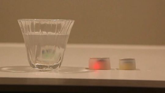 Dhairya Dand ist Student am renommierten MIT Media Lab und er geht gerne auf Parties. Dort wird gern auch mal etwas mehr Alkohol getrunken als gut tut und nach einer solchen Party wachte Dhairya Dand nach einem Blackout im Krankenhaus auf. Damit ihm das nicht noch einmal passiert, entwickelt er die Alkotest-Eiswürfel. Die bestehen zwar nicht aus gefrorenem Wasser, aber dafür ermitteln Sie, wiviel jemand getrunken hat. Dafür sorgt ein Beschleunigungssensor, der die Schlucke aus dem Glas pro Zeiteinheit erfasst und je nach Anzahl eine grüne, gelbe oder rote Leuchtdiode aufleuchtenlässt. Ein Toast auf soviel Einfallsreichtum.
