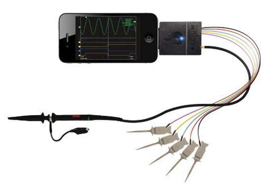Das Gerät, dessen Hardware auf einem PSoC 3-Chip von Cypress beruht, bietet eine Bandbreite von 5 MHz und eine Sample-Frequenz von 12 Megasamples/s. Neben dem iPhone kann es auch mit dem iPod Touch beziehungsweise den diversen iPads aus Cupertino betrieben werden. Integriert in dem Paket für rund 269 Euro ist auch eine Prüfspitze sowie Testklemmen und SMD-Grabber.